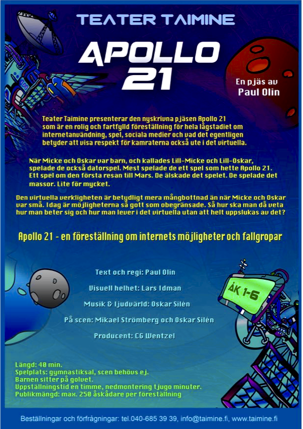 Apollo 21 var en rolig och fartfylld föreställning för hela lågstadiet om internetanvändning, spel, sociala medier och framför allt vad det betyder att visa respekt för kamraterna också i det virtuella.