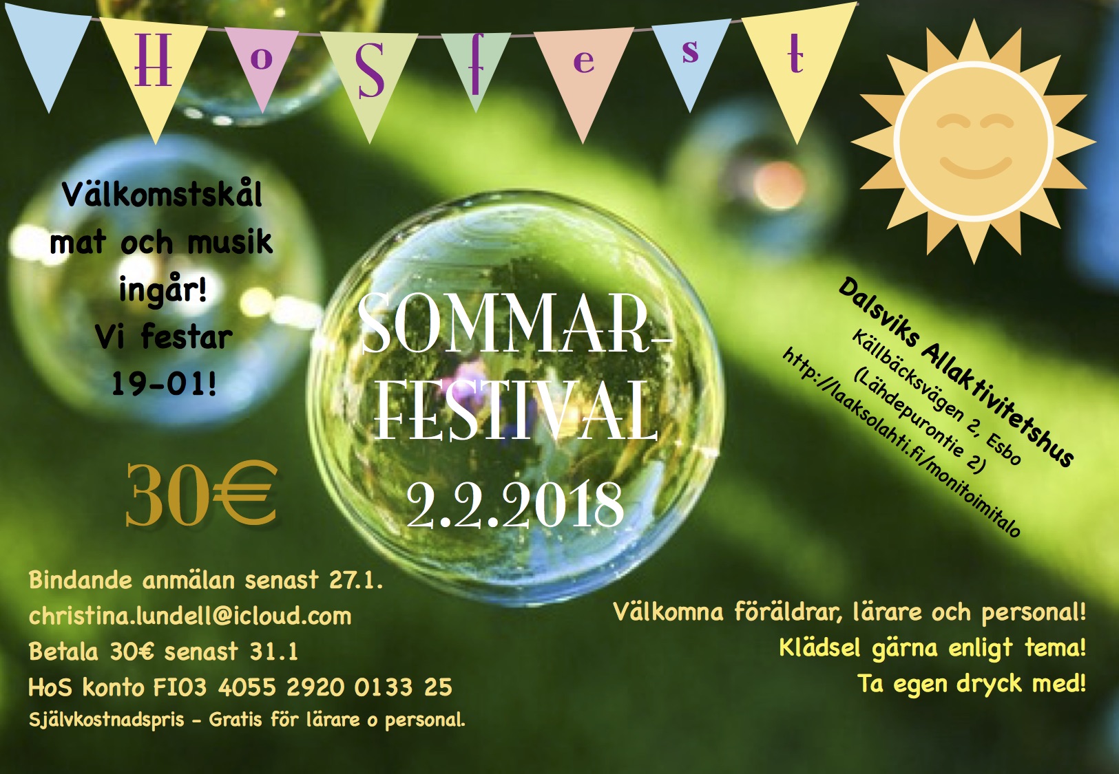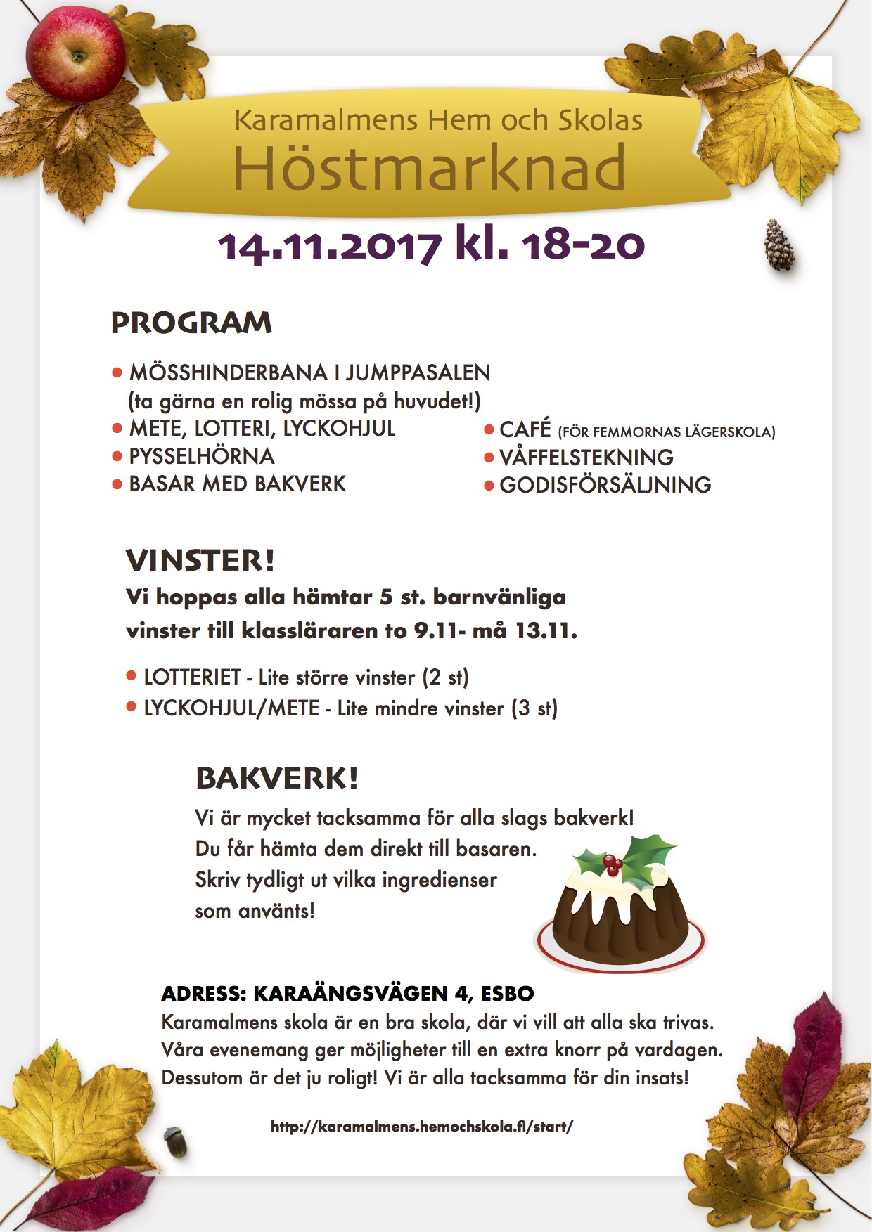 Femmorna hade café för insamling av medel till lägerskola på sexan. Ydeas (www.ydeas.fi) ordnade roligt actionprogram för barnen. Föräldrarna fick medieuppfostran och livlig diskussion med Johan Palméns "Det finns mera än Angry Birds. Föreläsningen arrangerades i samarbete med SFV Bildning. Vi avslutade kvällen med HoS stadge-enliga årsmöte.
